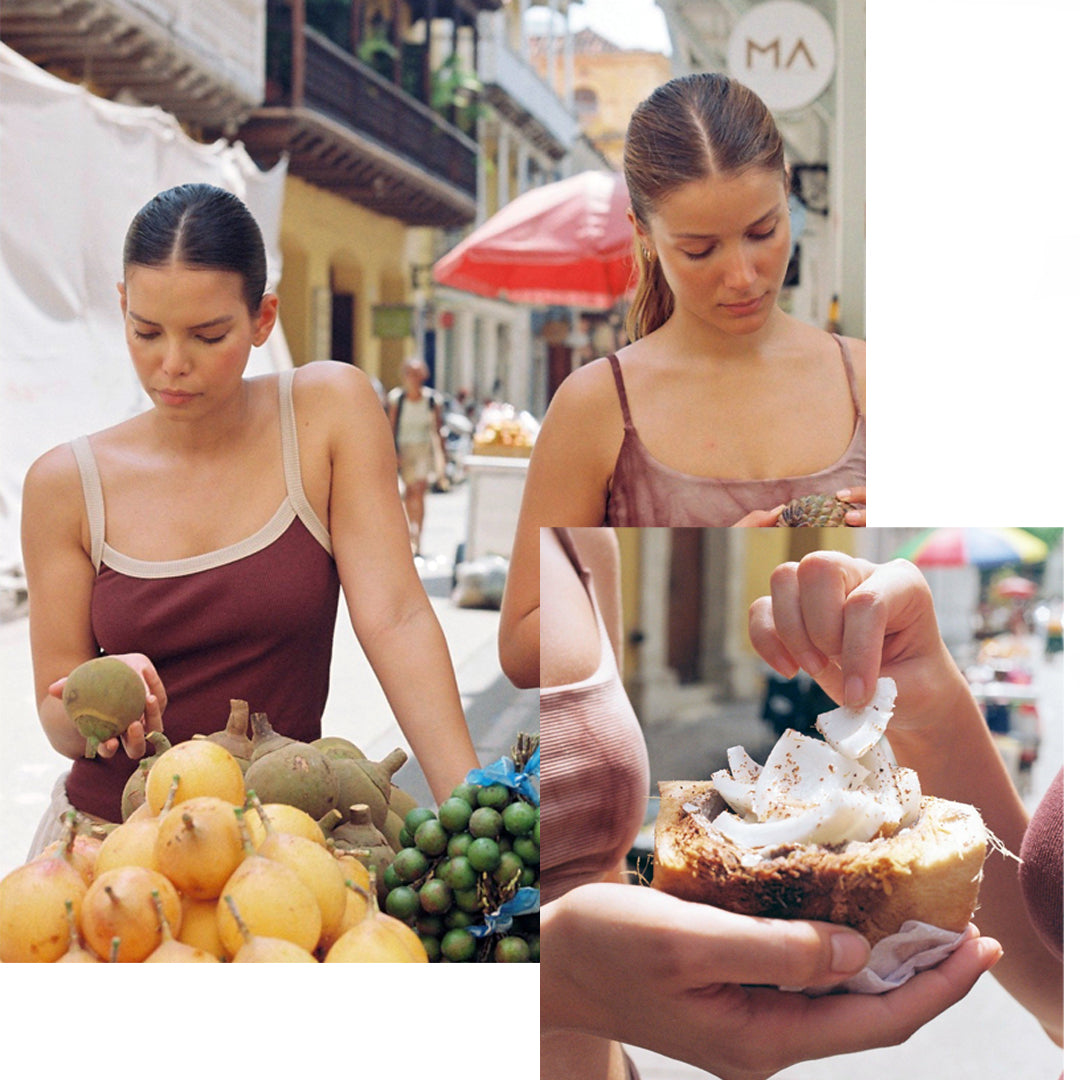 Para esta temporada elegimos Colombia. Todo el mundo está hablando de este destino paradisíaco y por eso lo sentimos relevante. A su vez, el recuerdo de mi último viaje como mochilera, comiendo frutas con tajín y sal el día entero, me invitaba a regresar.