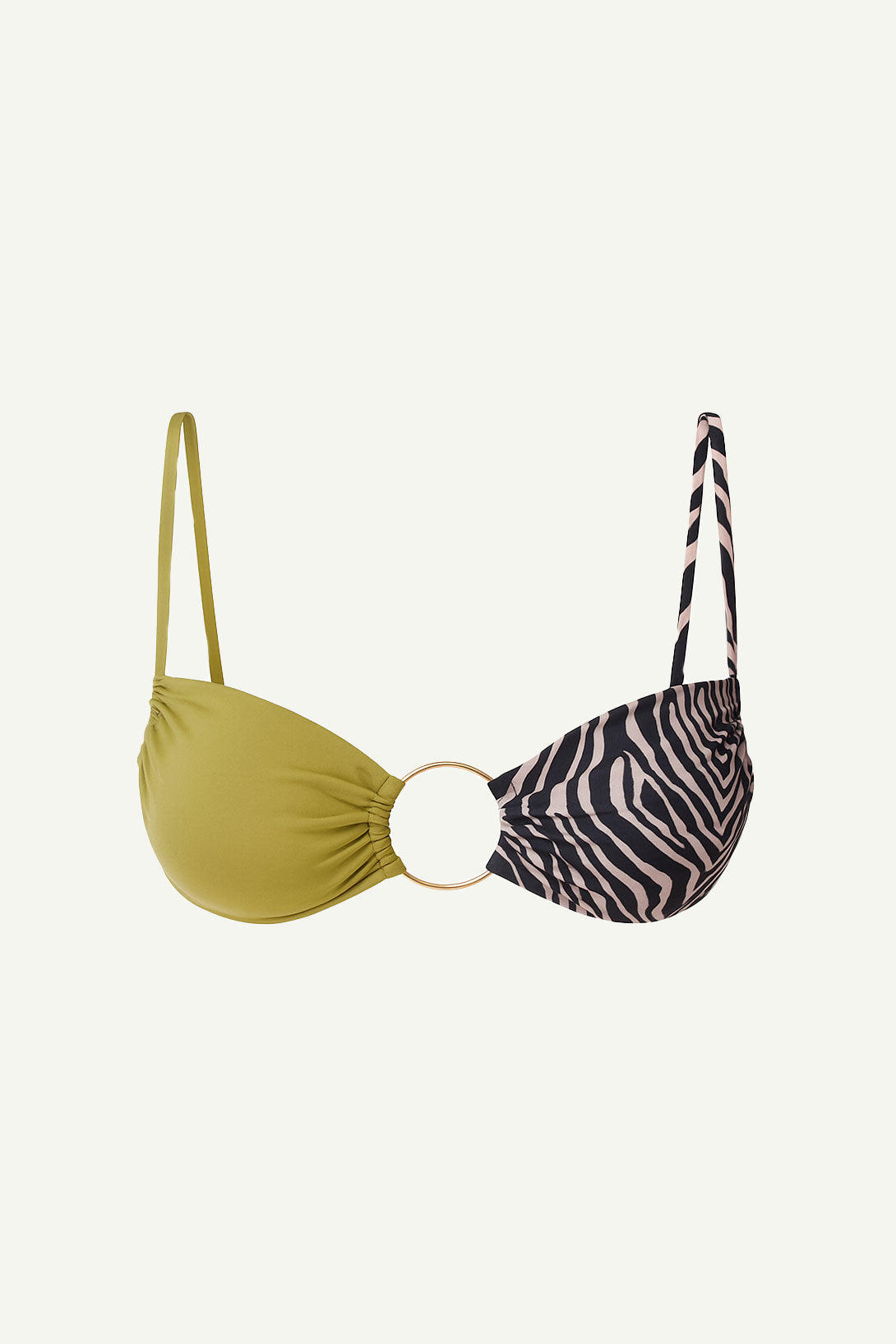 Corpiño bandeau embolsado con detalle de herraje dorado en el centro del busto dandole un toque original, canchero y femenino a la vez. Breteles libres a la espalda o podes usarlo sin breletes como en la primer foto para un bronceado sin marcas. Contorno con coletas para atar en la espalda.