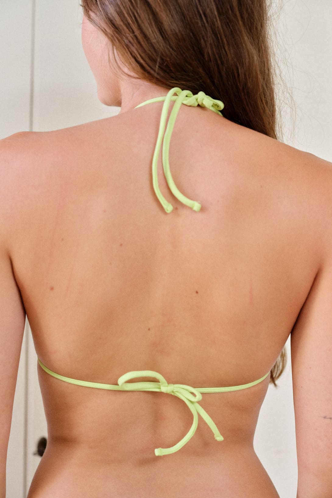 Los breteles son libres, podés atarlos como prefieras: al cuello, dejarlos rectos al hombro o cruzarlos atándolos a la tira de la espalda.