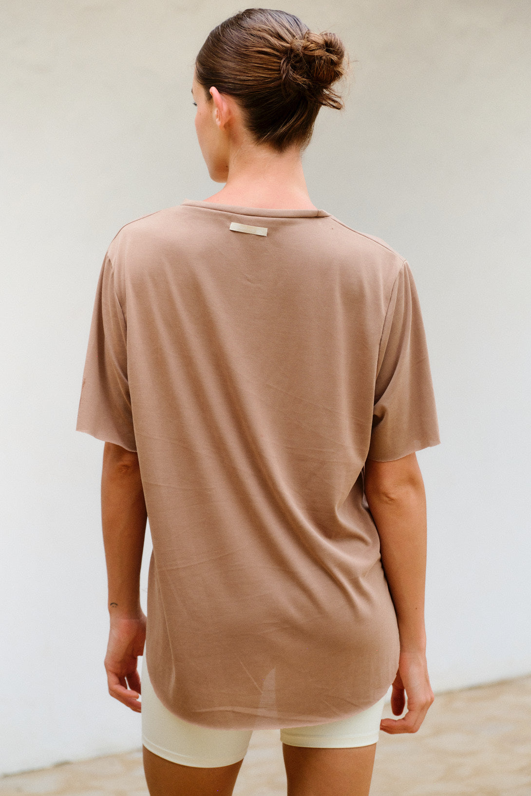 Remera de cupro. Este textil es super comodo. Largo que llega a la mitad de la cola. De calce semi relajado.