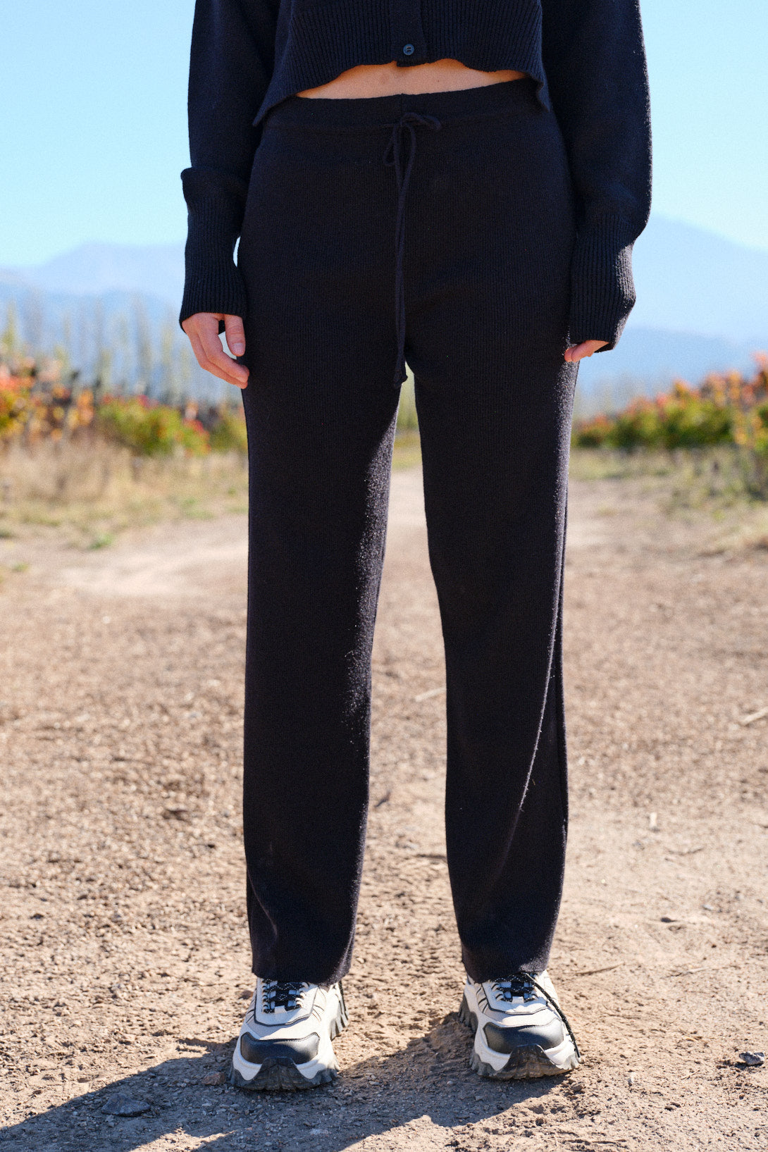 Pantalon confeccionado en viscosa soft, de calce recto, cintura con cordon para ajustar. Detalle de punto en morley en los laterales