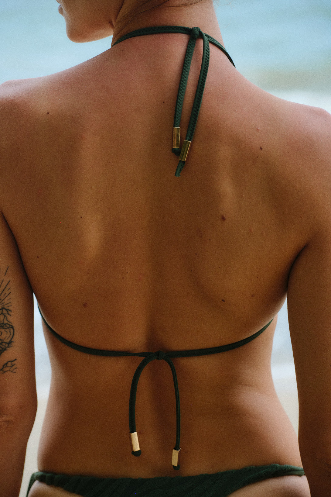 Los breteles son libres, podés atarlos como prefieras: al cuello, dejarlos rectos al hombro o cruzarlos atándolos a la tira de la espalda.