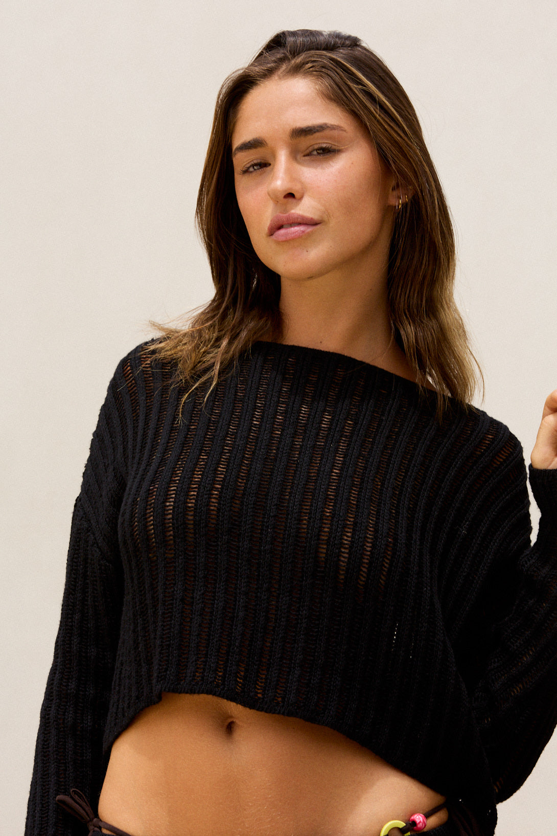 Sweater tejido punto liviano manga larga, tiene un calce relajado y es ideal para combinar con la pollera Pia.