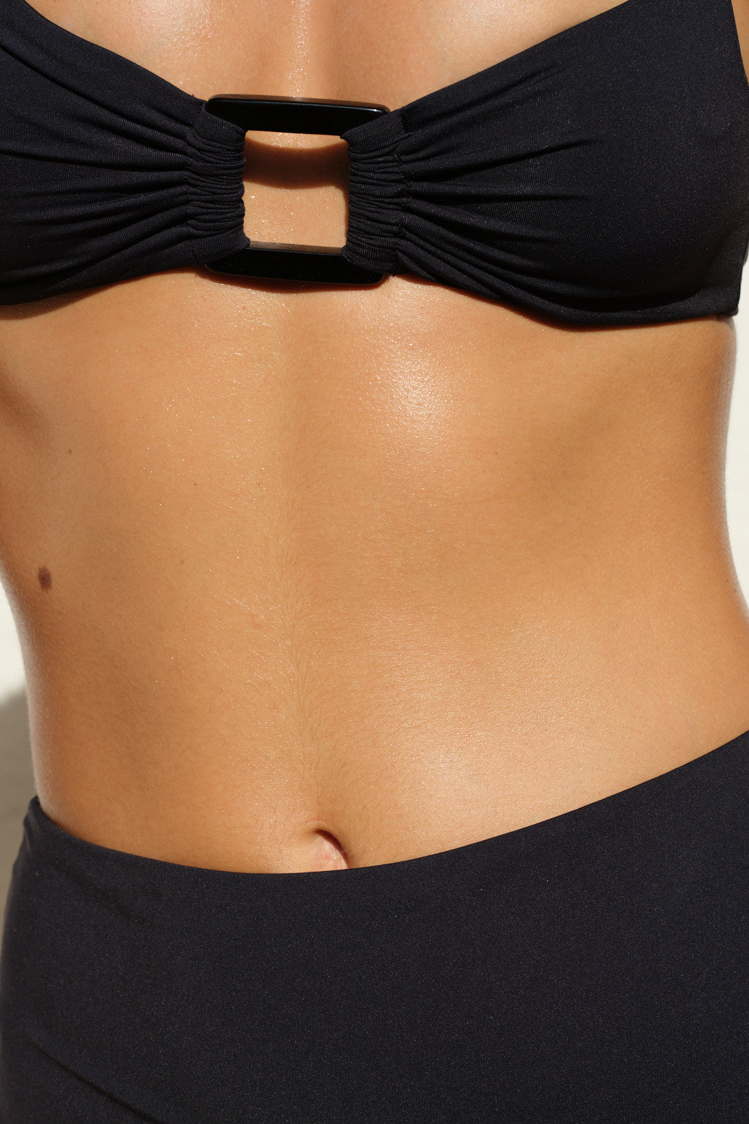 Corpiño bandeau embolsado, con breteles anchos que aseguran un mejor sosten. Detalle de herraje personalizado en centro del busto. Breteles fijos a la espalda, con correderas para regular. Contorno con coletas para atar en la espalda.