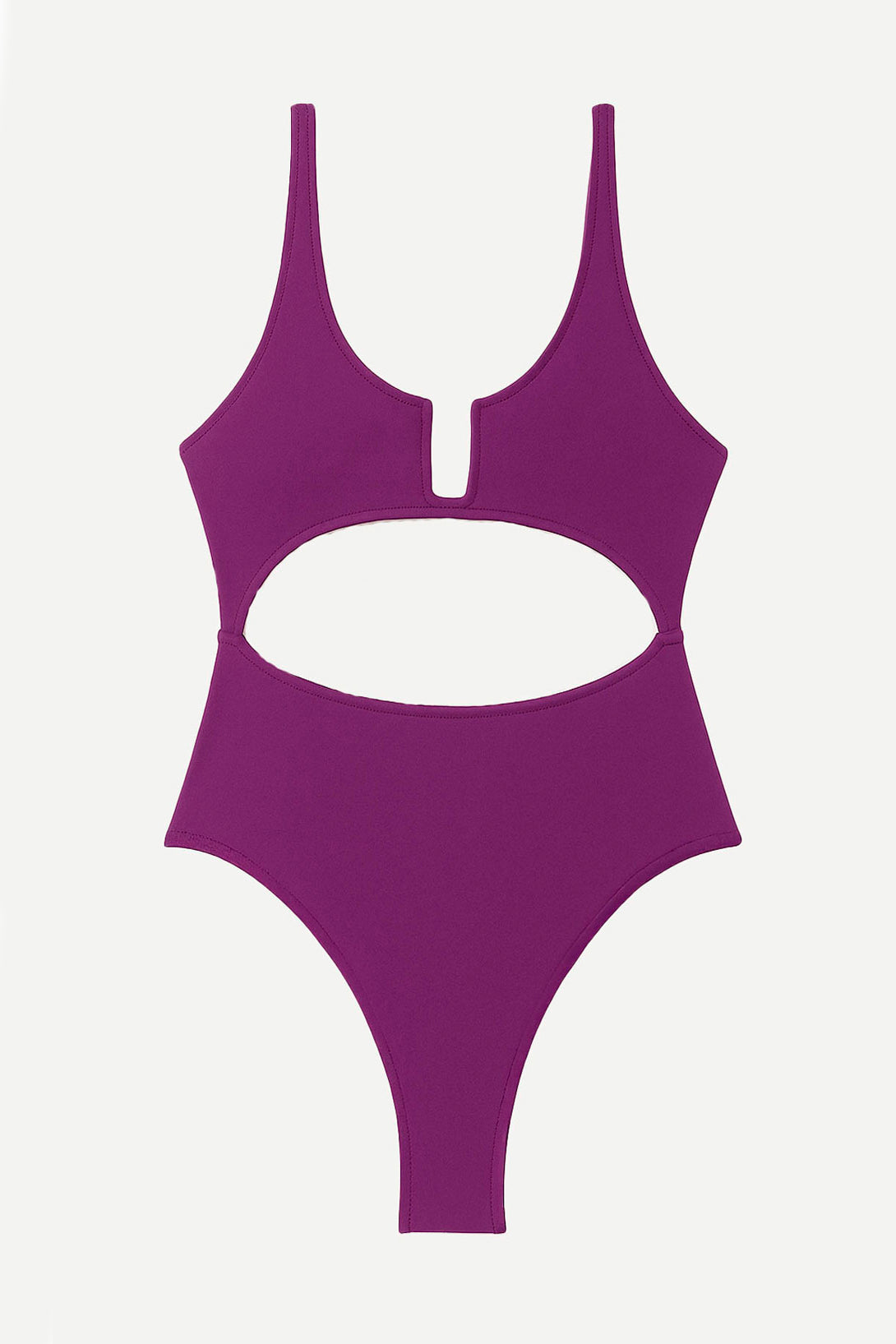 Entera vedetina, tiro alto, con escote en U y taza móvil. Lleva un recorte bajo el busto con elástico para asegurar un buen sostén. Tiene breteles anchos regulables.