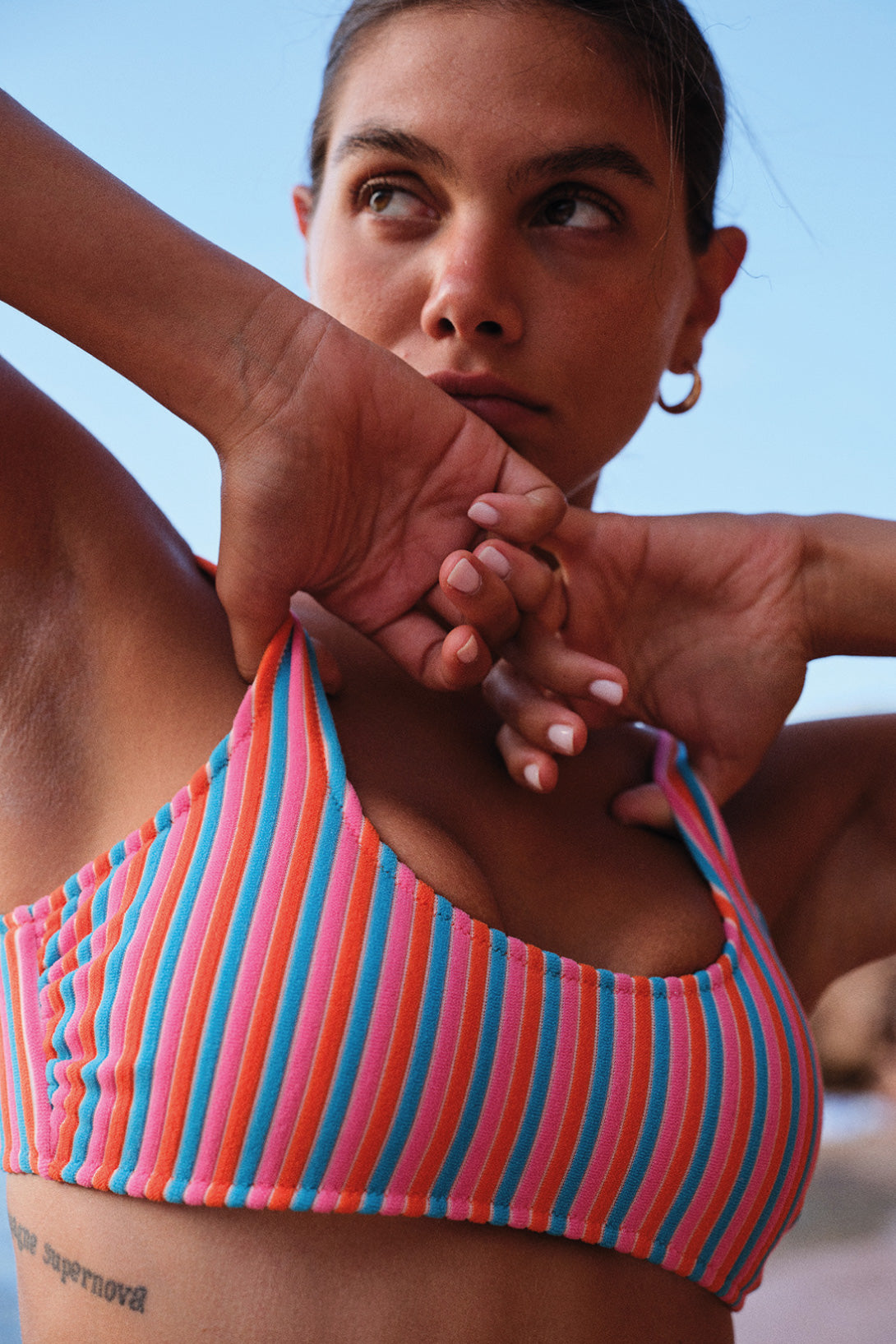 Textura de líneas verticales acanaladas tipo plush. Tu bikini que se convierte en top para stylear!