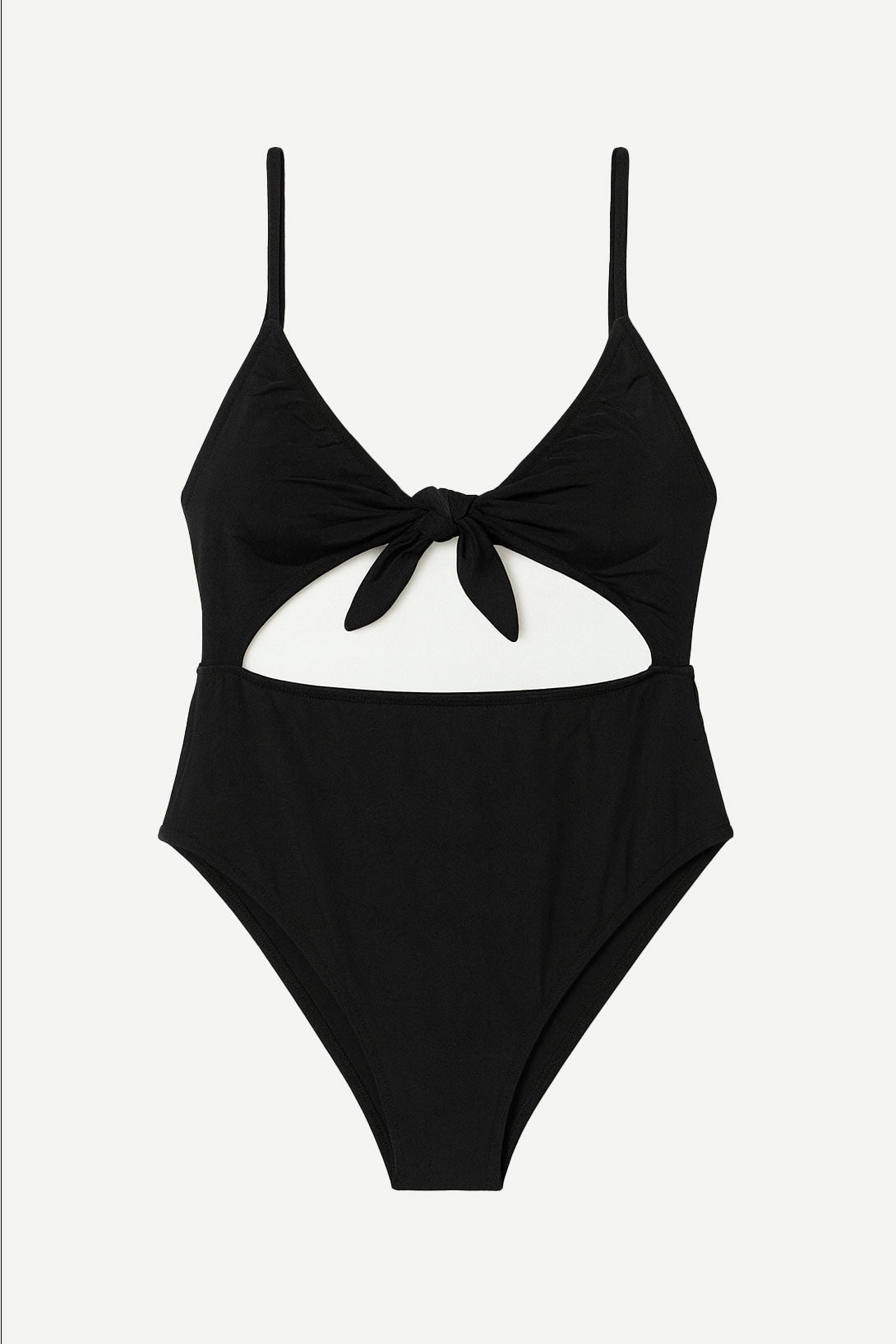 Entera vedetina, tiro alto y con taza móvil. Lleva un recorte bajo el busto, breteles finos y regulables, con detalle de nudo para atar al frente.