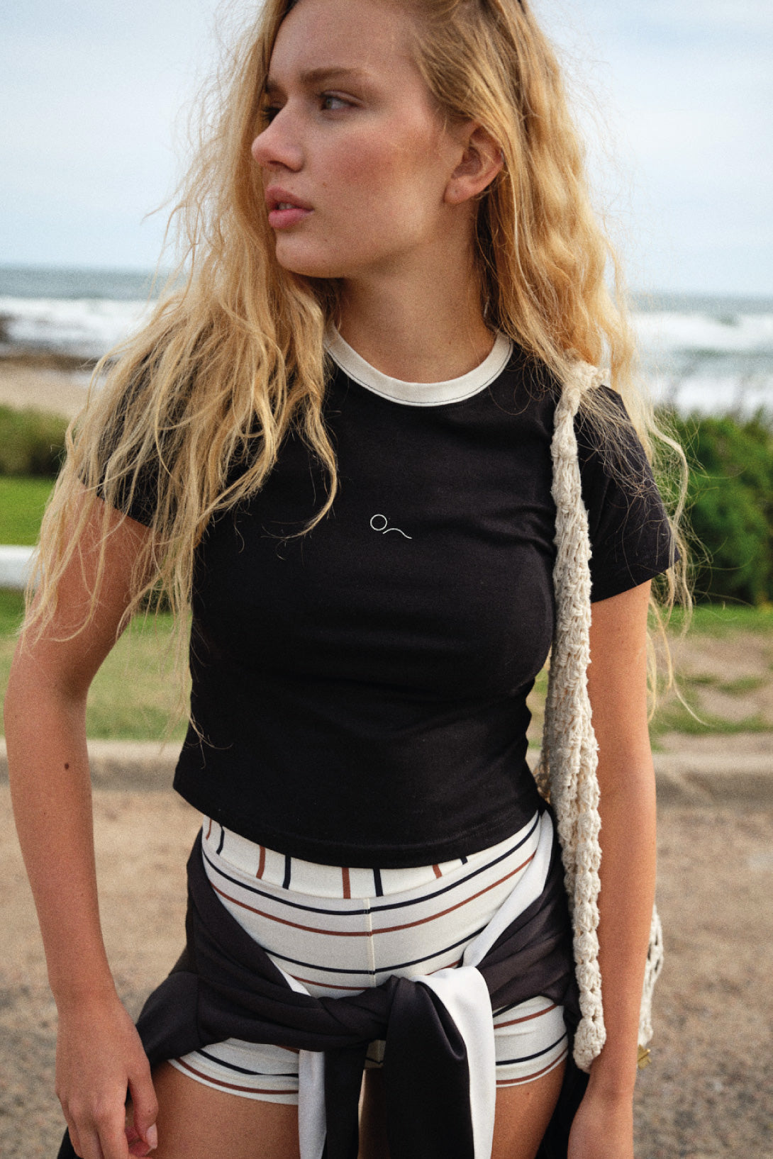 La prenda se adapta al cuerpo por estar confeccionada de un textil con spandex, que además es muy suave al tacto y fresco. Podes combinarla con lo que quieras, ideal para complementar tus bikinis!