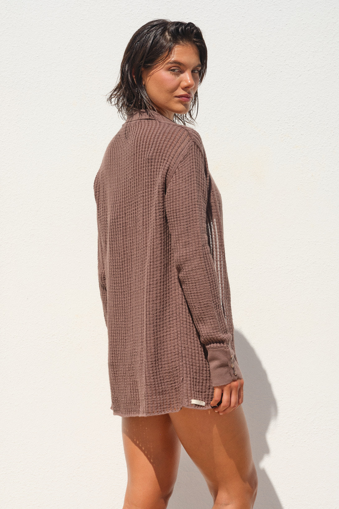 El clásico reinventado para un estilo fresco y natural. Esta camisa es la combinación perfecta entre un look sofisticado y la comodidad de tu tejido favorito. Confeccionada en suave 100% algodón y un delicado punto desagujado, te ofrece una textura ligera y distintiva. Su clásico cuello polo aporta un toque atemporal, mientras que su largo, que cae por debajo de la segunda cadera, te brinda una silueta fluida y moderna.