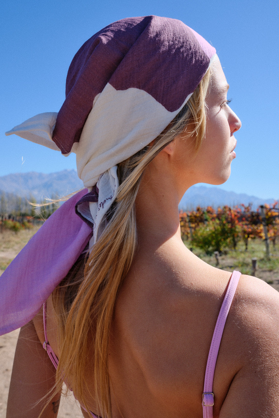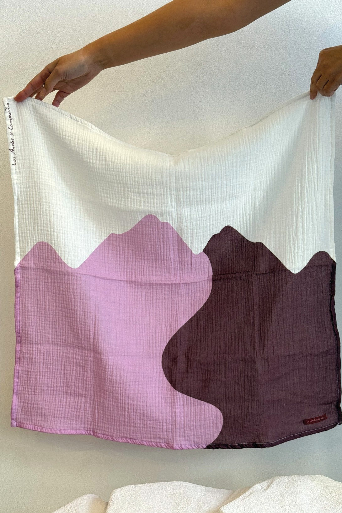 Pañuelo confeccionado en gasa de algodón, lo que le proporciona una textura suave y ligera. Con un tamaño de 0,65 x 0,65 metros, es perfecto para stylear tus outfits. Su estampa con silueta de montañas a color añade un detalle atractivo, mientras que su composición de algodón asegura comodidad y frescura.