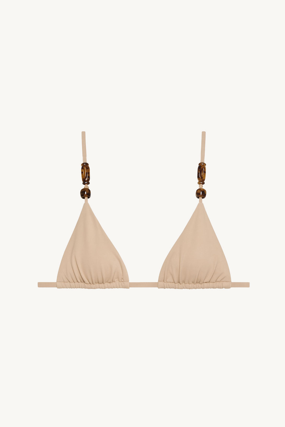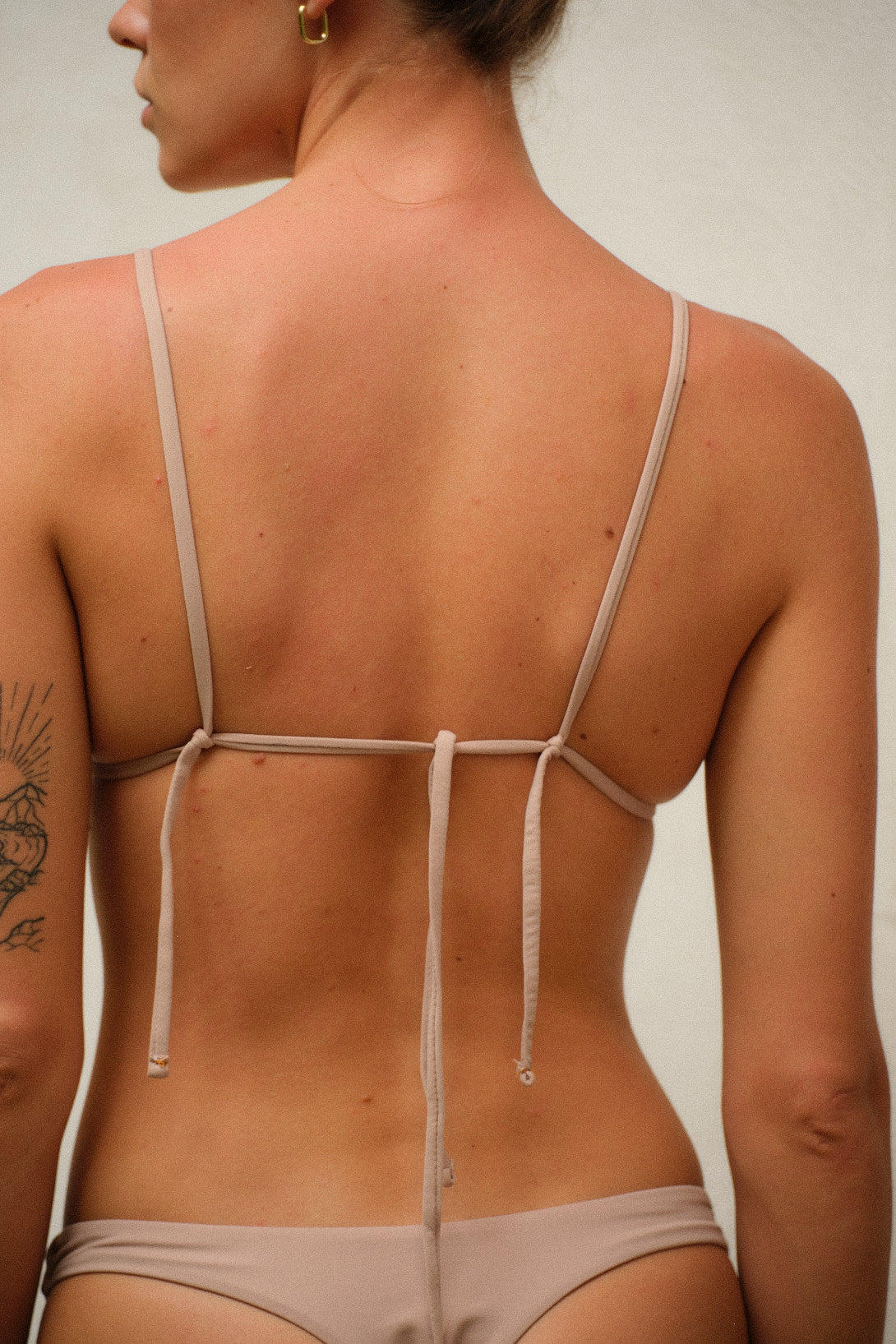 El básico de siempre, con un toque de color que lo hace único. Este corpiño es un triangulito clásico, con un diseño que nunca falla. Sus breteles libres para atar te dan un ajuste perfecto, mientras que el detalle de avio en color plata gastado le da el toque final para una prenda basica pero unica.