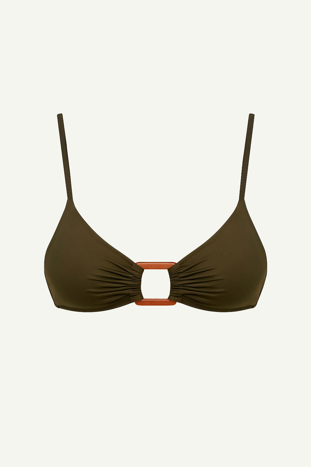 Bandeau con argolla en centro delantero a contra tono en color crema. Breteltes finos fijos a la espalda con reguladores. Tiene breteles anchos en los talles 4 al 5. Coleta para atar espalda.
