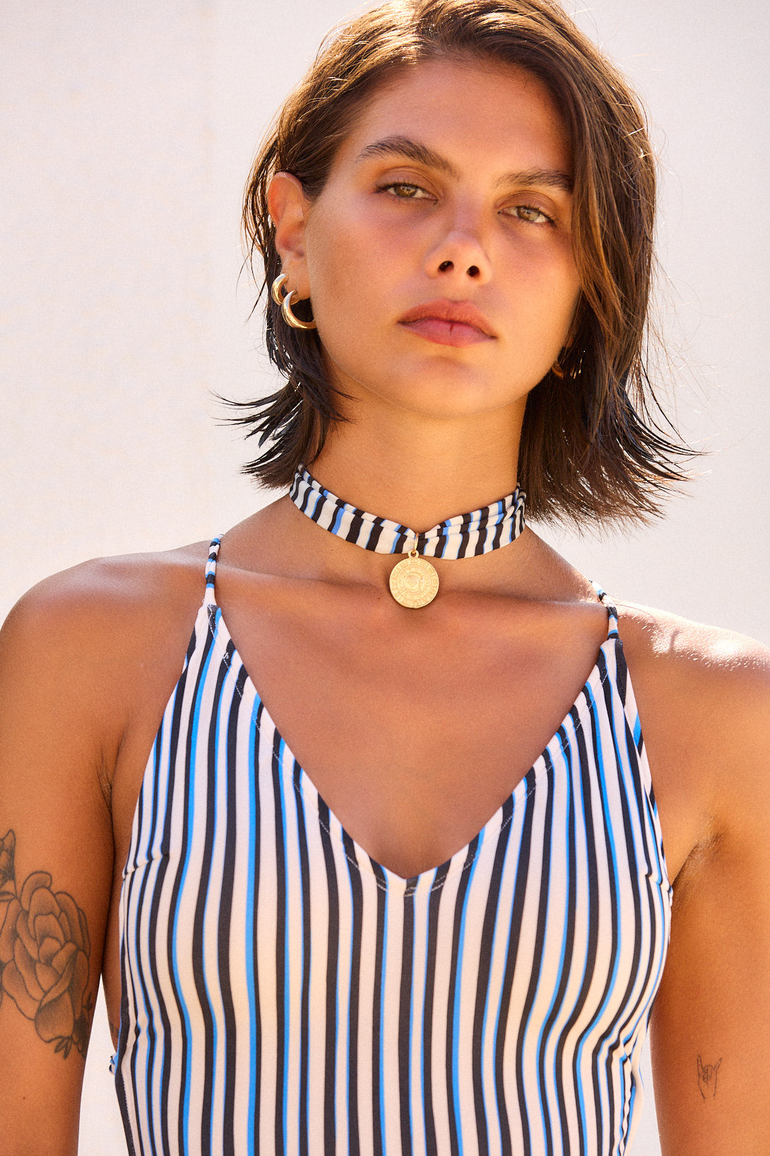 Entera cola less con breteles finos cruzados en espalda y taza móvil.
