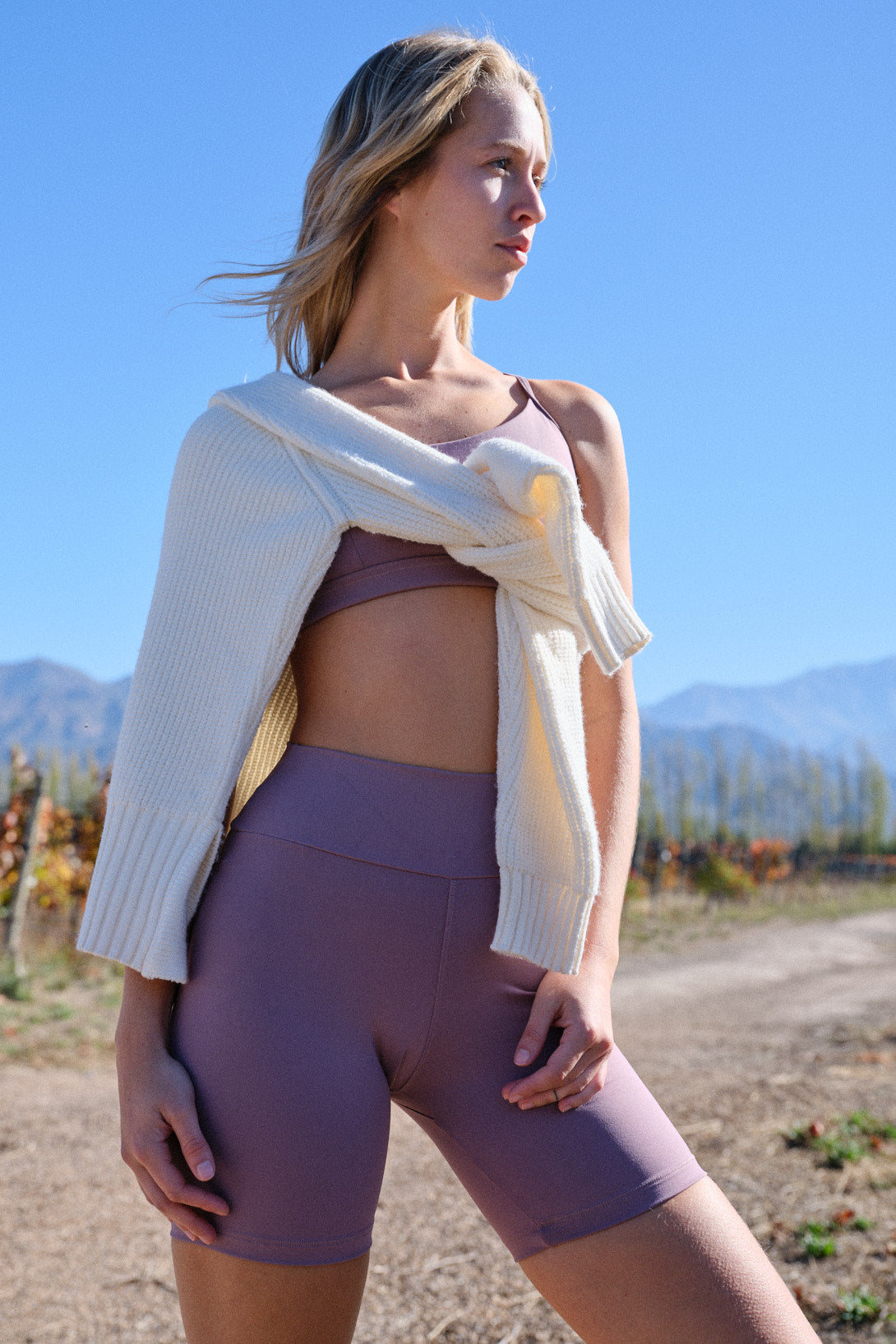 Esta prenda está hecha con un textil que se adapta al cuerpo de forma modeladora, generando contención, no marca ni aprieta. Recomendada para actividades de alto impacto, acompaña tus movimientos.