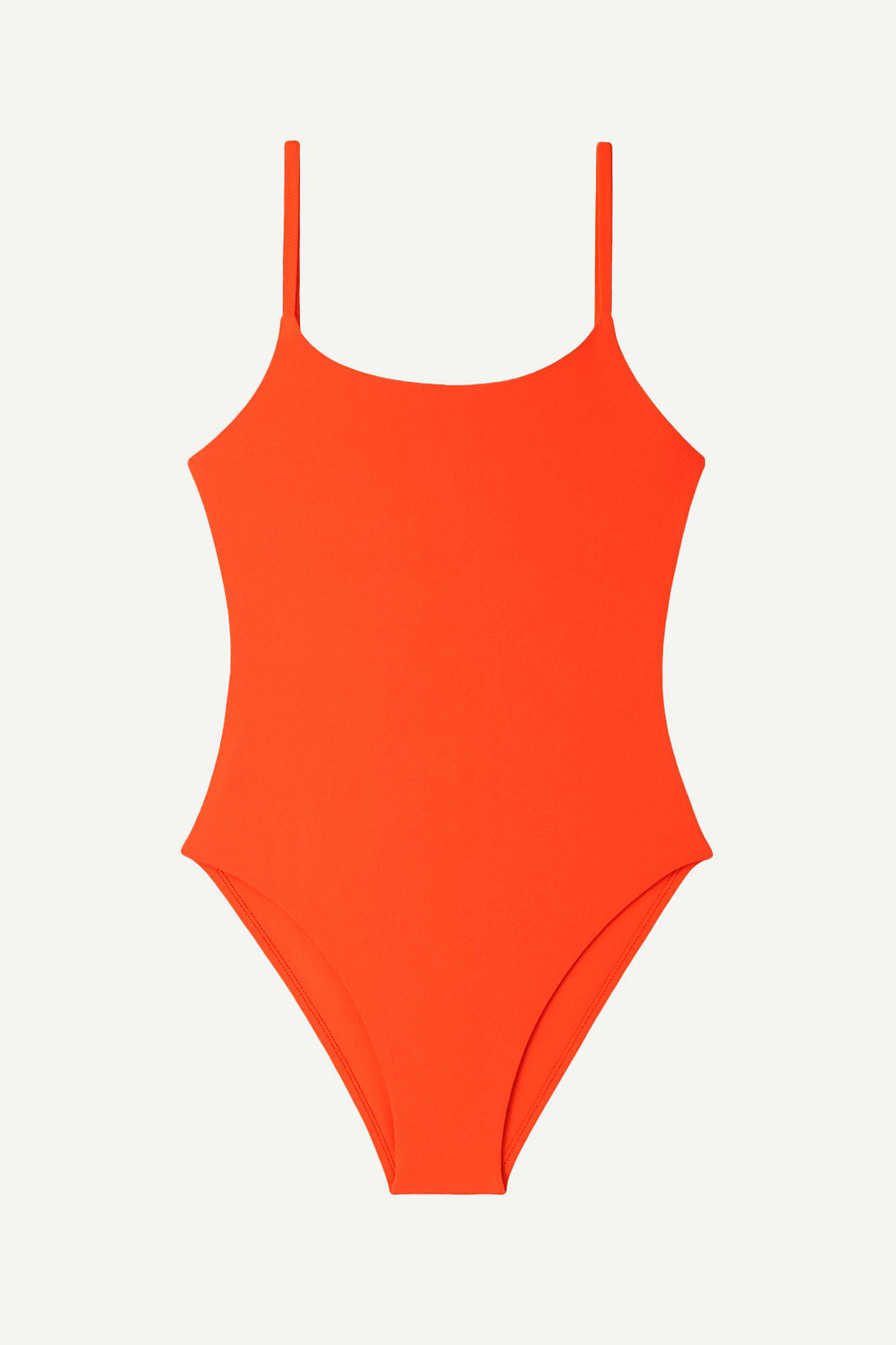 Entera semi vedetina con breteles regulables. Escote recto y espalda descubierta.