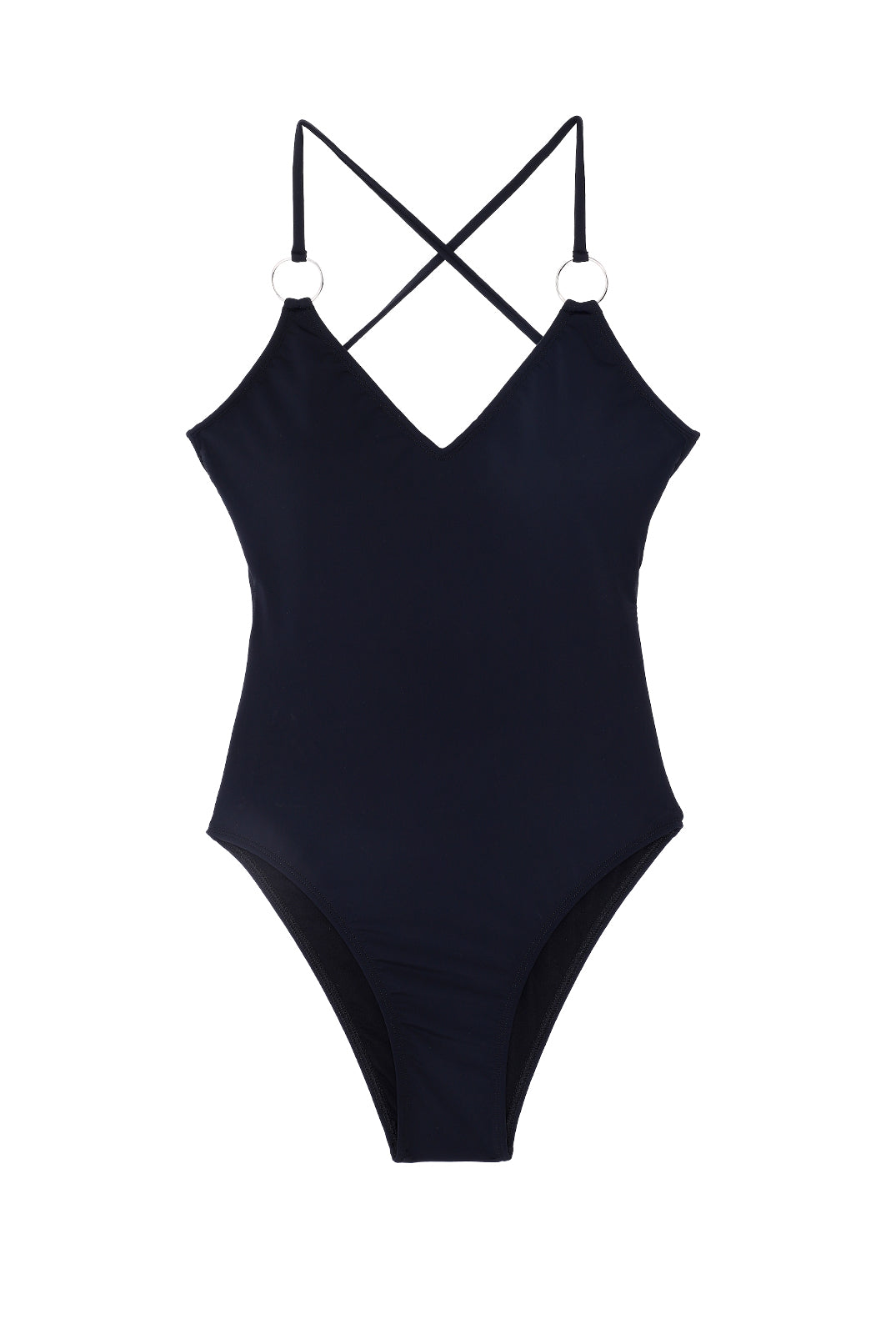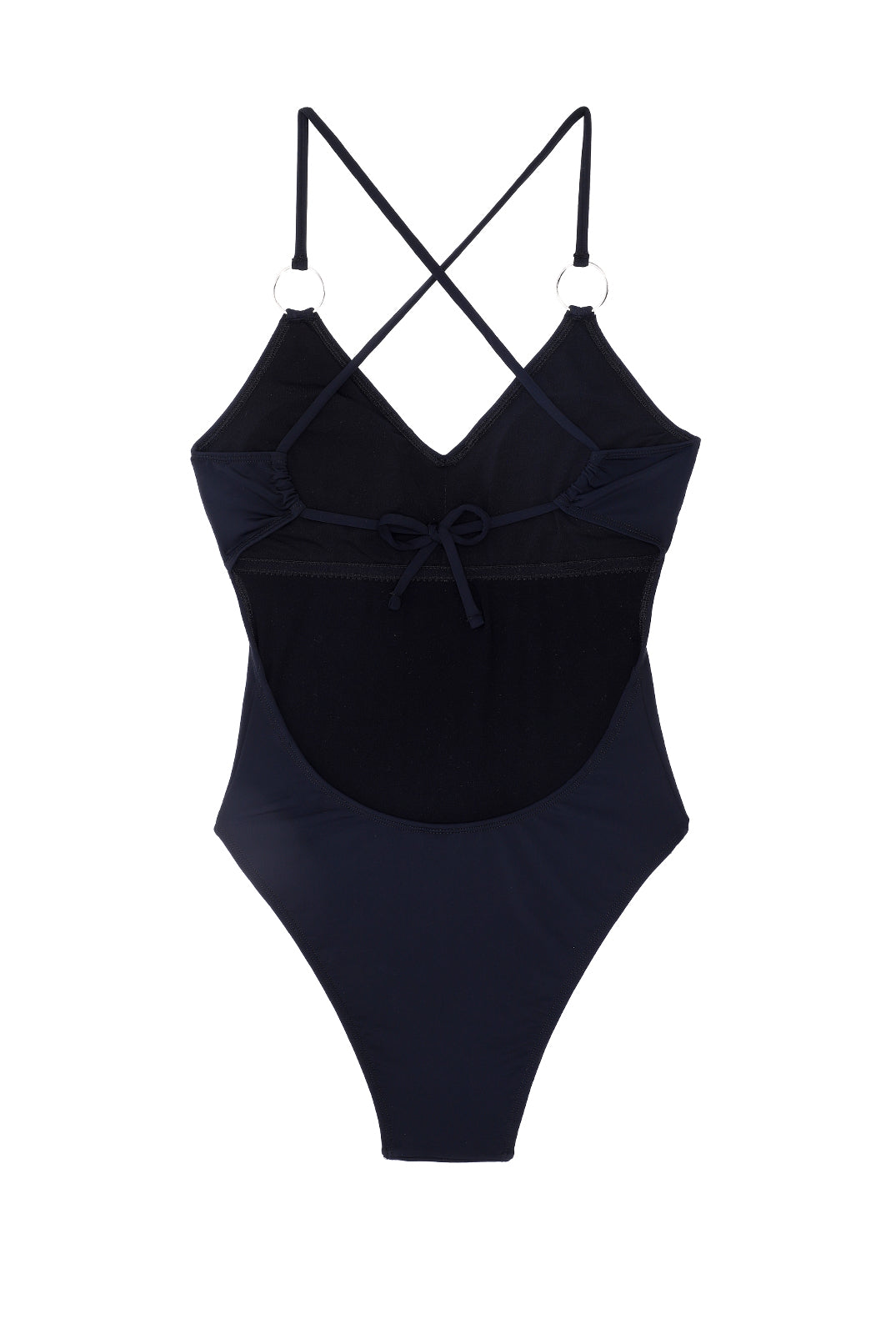 Entera vedetina con taza removible y breteles libres para atar en espalda. Detalle de argollas en el frente.