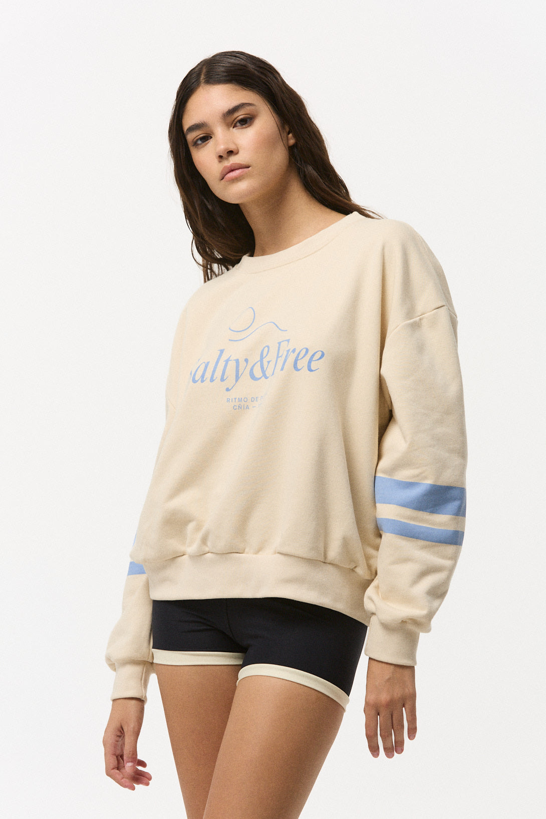 Buzo en tejido rustico con estampa "Salty" en delantero y mangas.